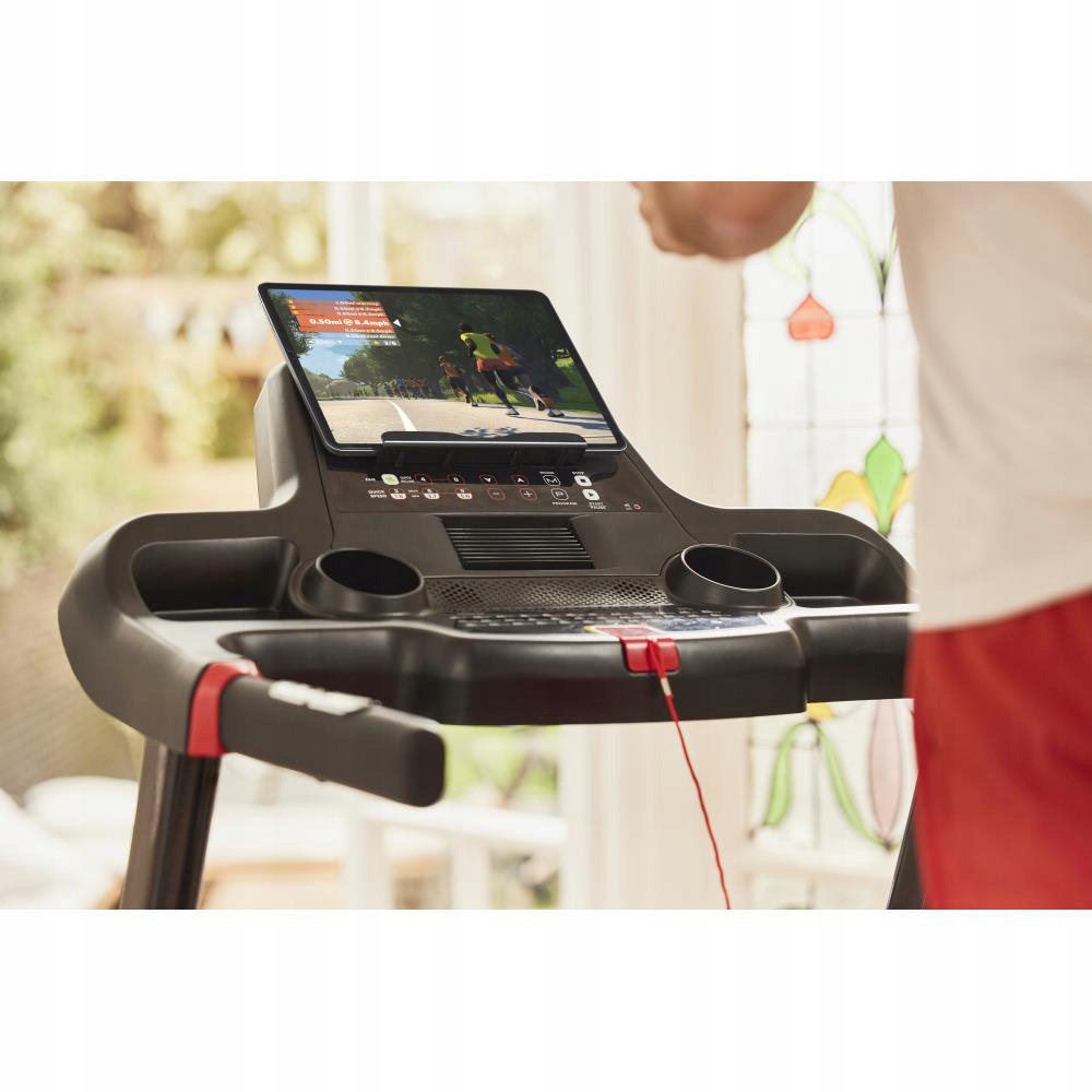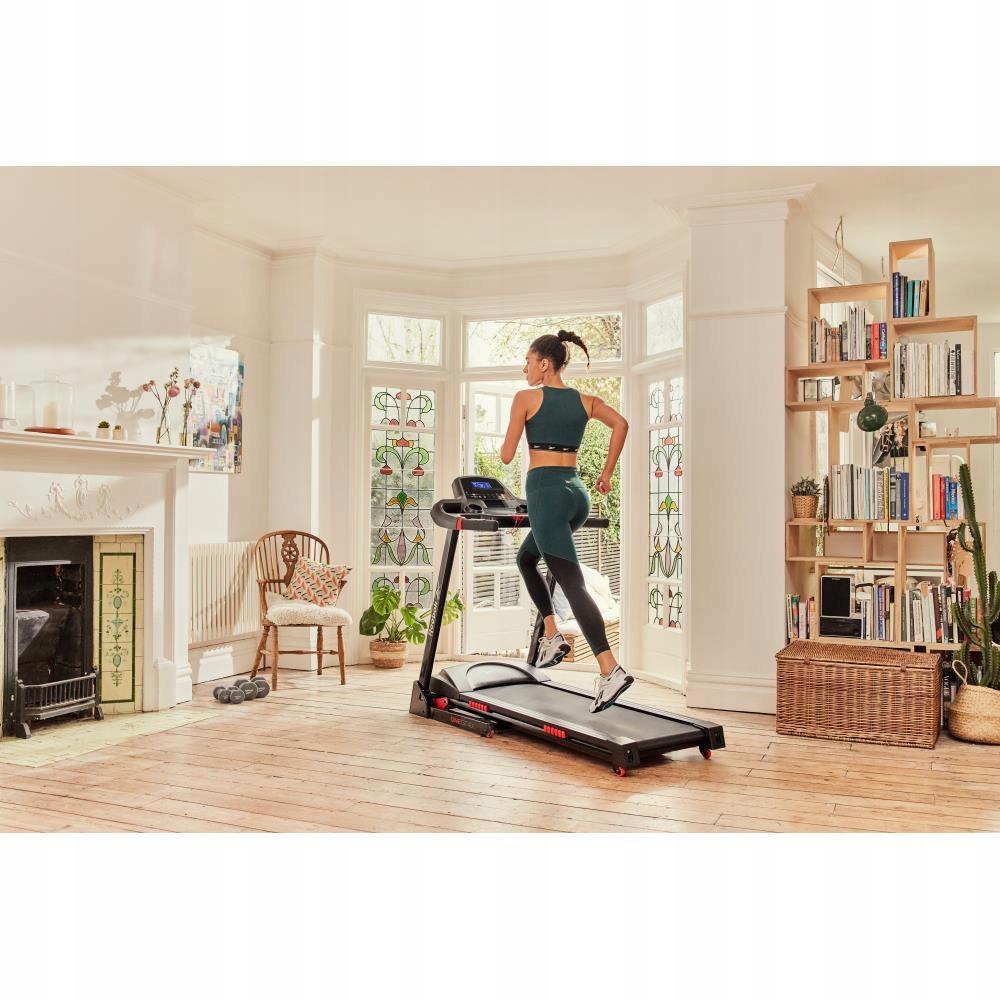 Czytelny wyświetlacz LCD (5 cali) pokazuje wszystkie kluczowe dane: prędkość, czas, dystans, kalorie, tętno i nachylenie. 43 programy treningowe – w tym 36 fabrycznych, 3 użytkownika i 3 celowe – gwarantują urozmaicone sesje treningowe.