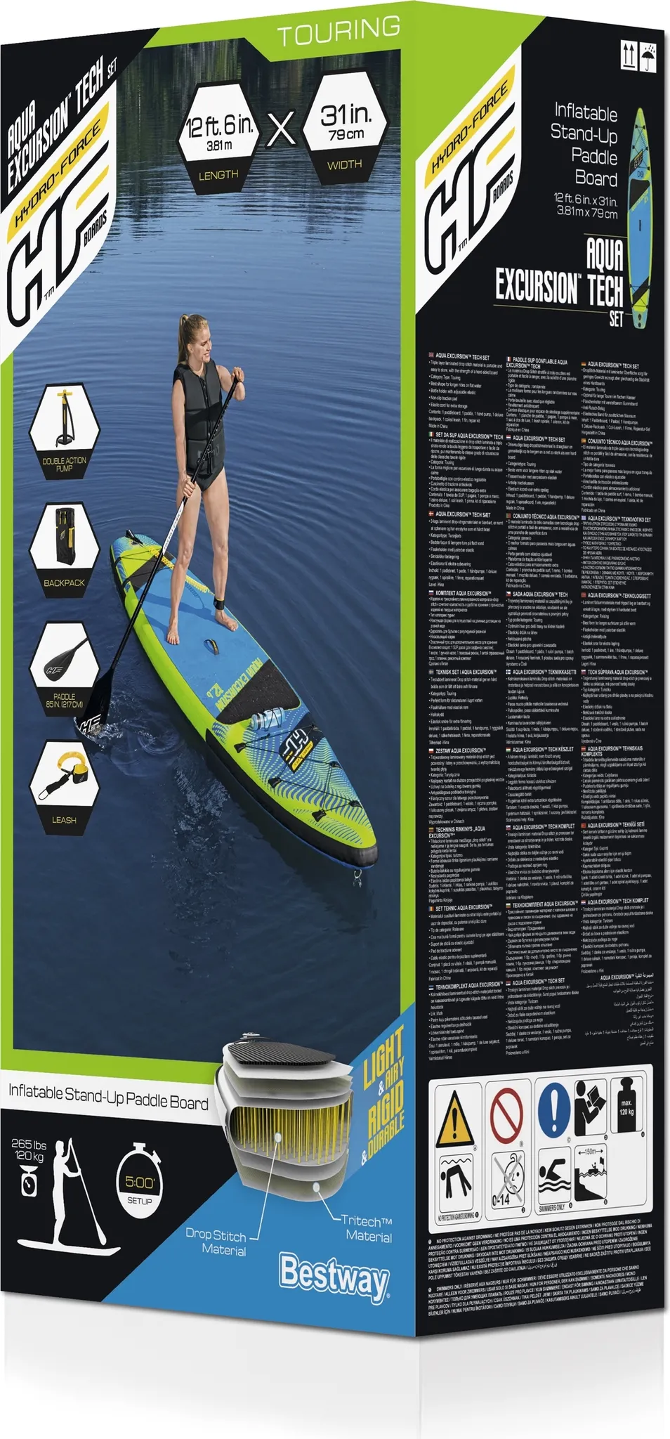 Deska SUP Hydro-Force Bestway 65373 – 381 cm do 120 kg, touringowa deska na dłuższe trasy