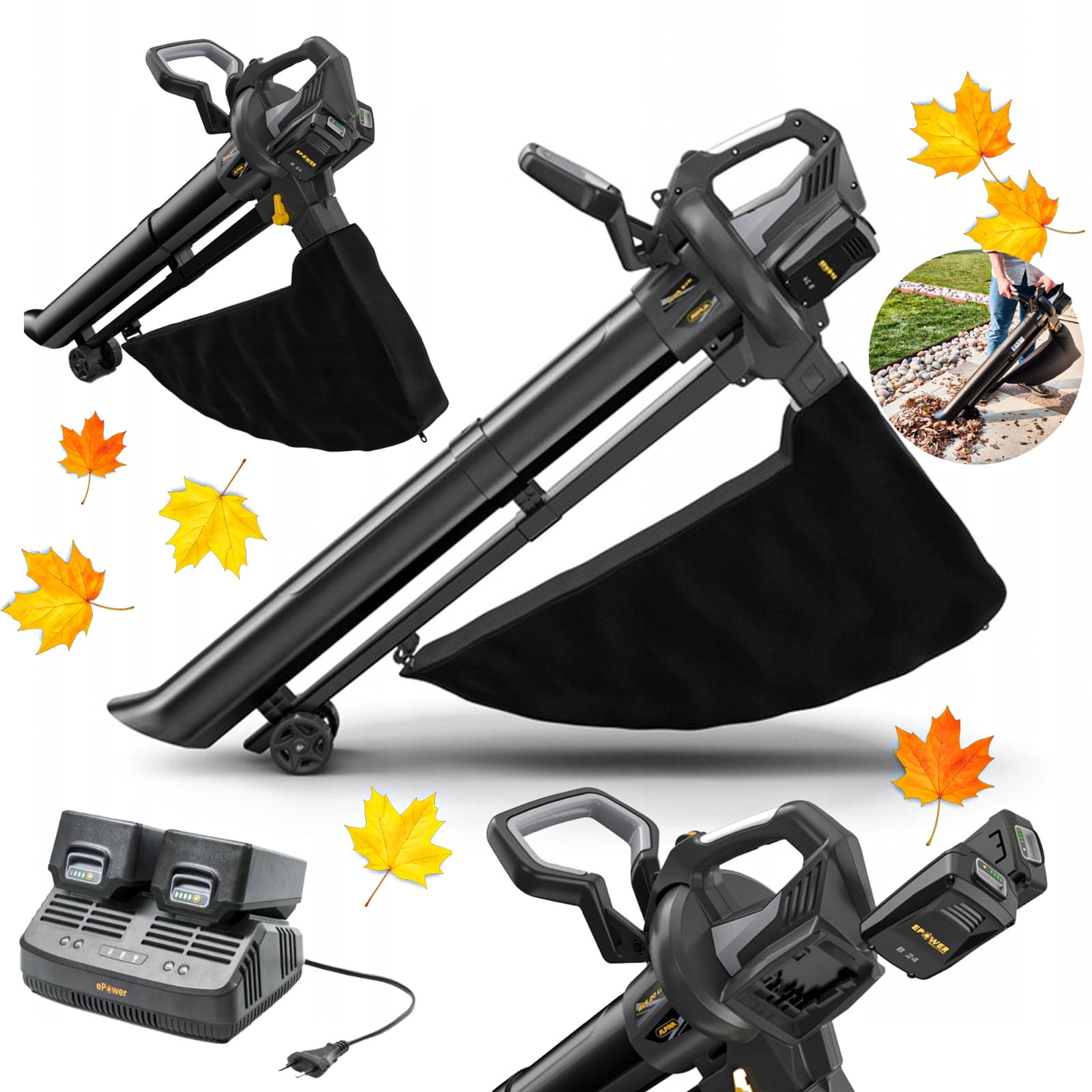 ✅ 3 w 1 – dmuchawa, odkurzacz i rozdrabniacz do liści