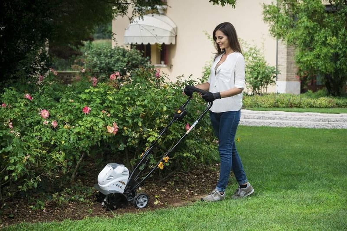 Z wagą około 14 kg i obecnością dwóch tylnych kółek, glebogryzarka jest bardzo mobilna i łatwa do prowadzenia nawet przez osoby o mniejszej sile fizycznej.