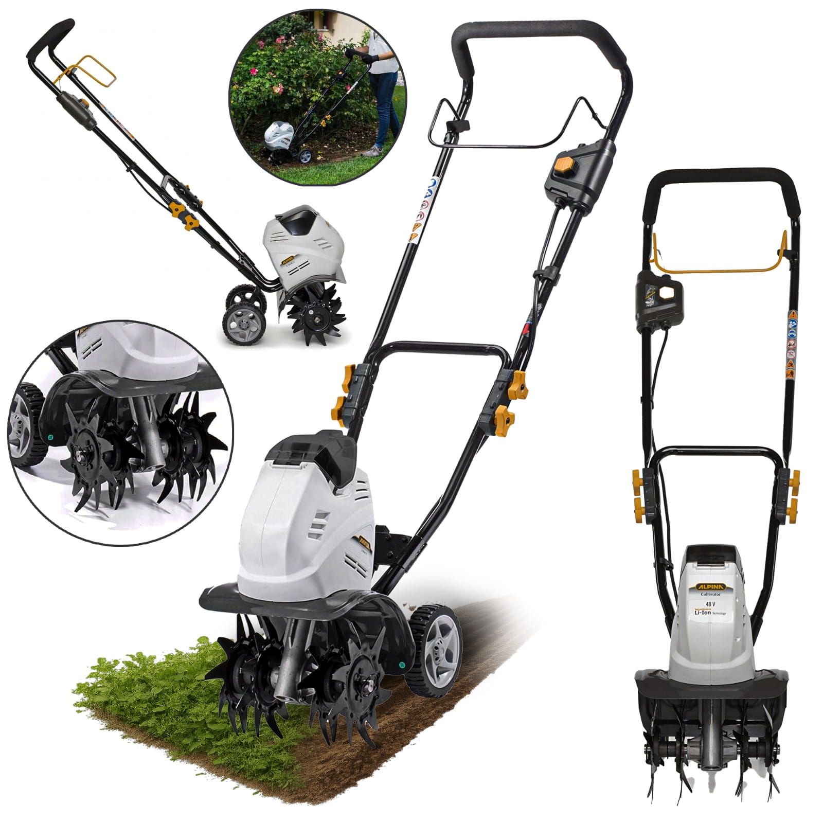 Alpina TI 2648 Li to nowoczesna, kompaktowa glebogryzarka akumulatorowa, stworzona do wygodnego i cichego spulchniania ziemi w ogrodzie lub na działce. Dzięki zasilaniu akumulatorem 48 V (brak w zestawie) i lekkiej konstrukcji (14 kg), praca staje się nie tylko bardziej ekologiczna, ale też znacznie prostsza i przyjemniejsza.