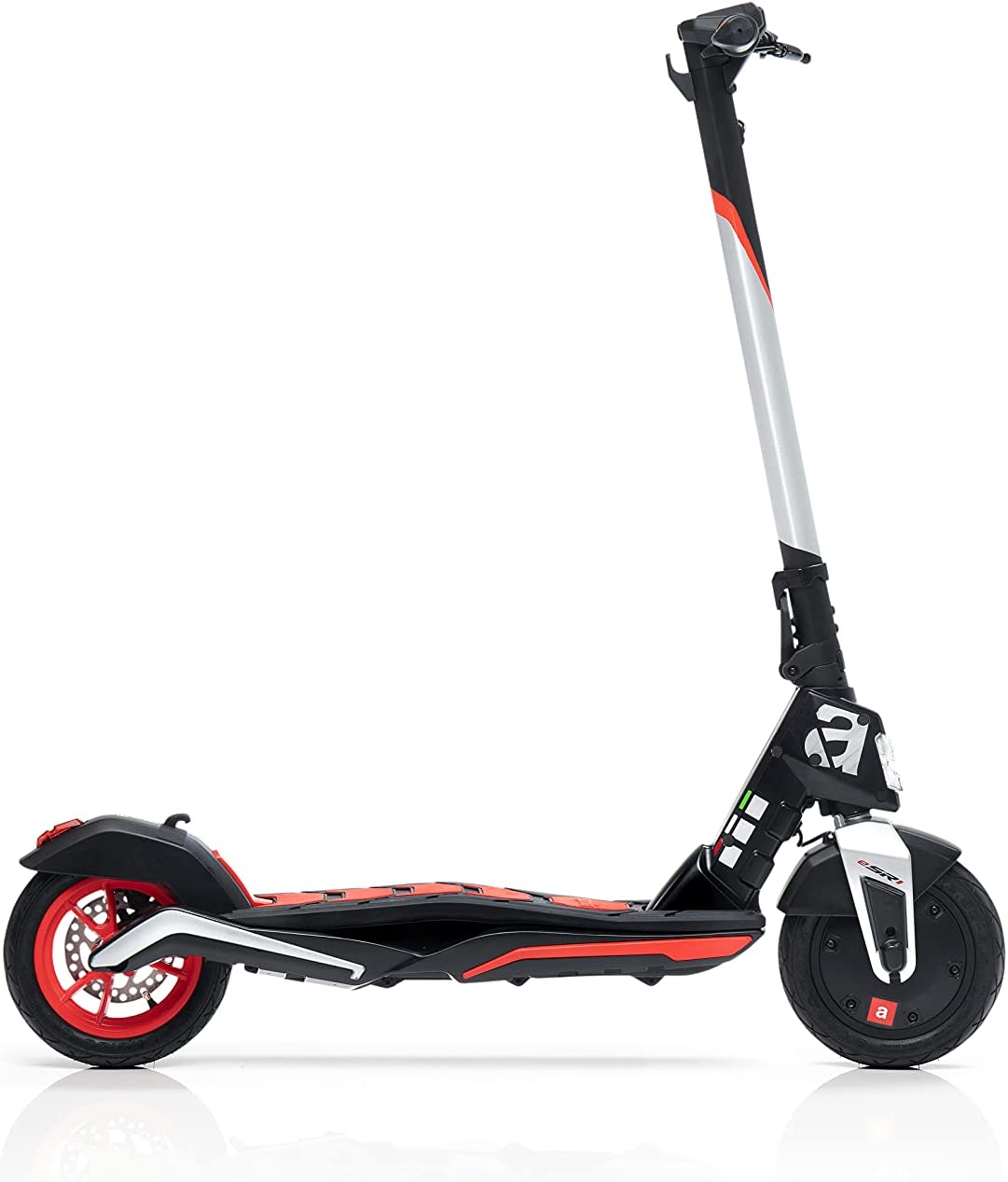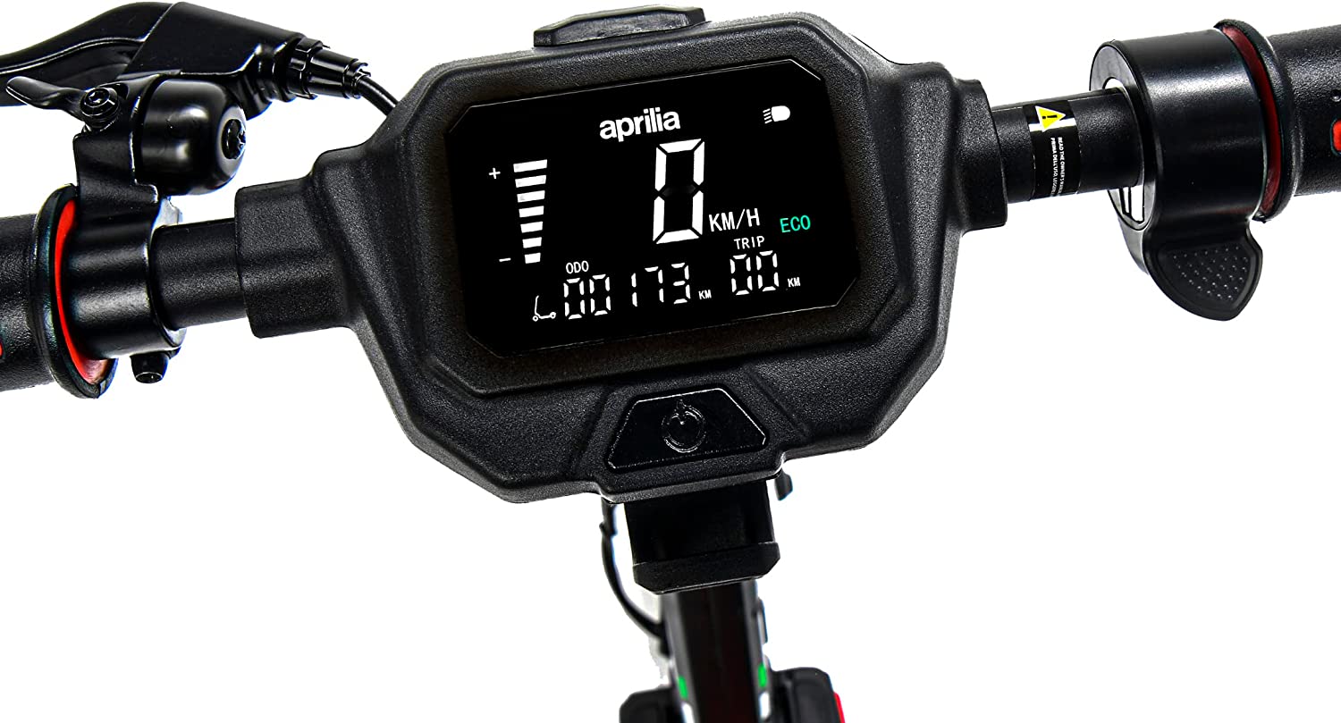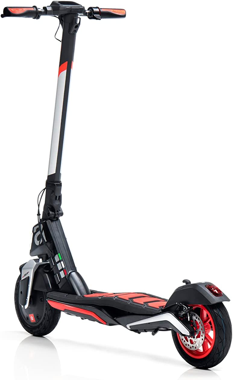 APRILIA ESR1 wyróżnia się sportowym wyglądem w czarno-czerwonej kolorystyce, inspirowanej motoryzacją. Dynamiczna linia i nowoczesne detale sprawiają, że hulajnoga przyciąga uwagę i podkreśla charakter użytkownika.
