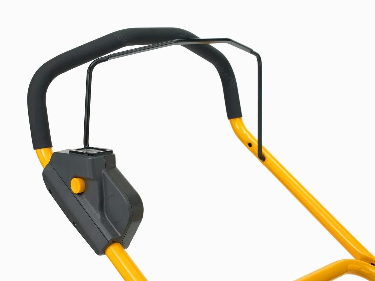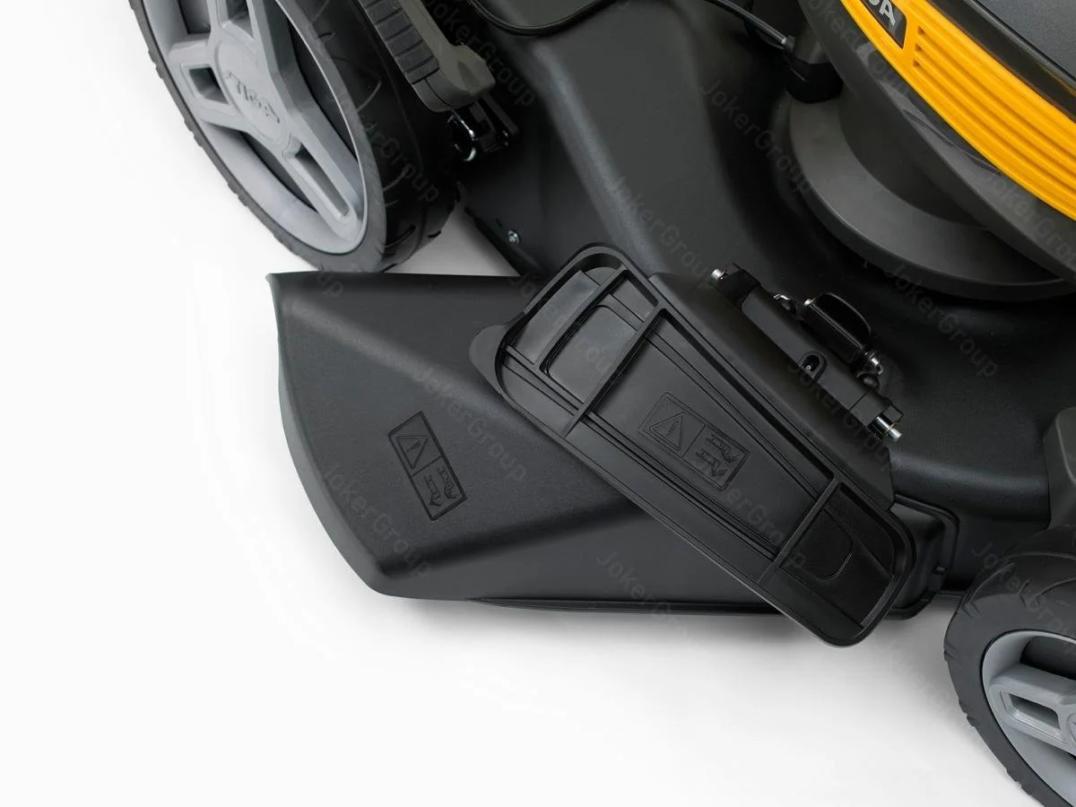 - Wyrzut tylny – idealny do szybkiego koszenia bez konieczności zbierania trawy.