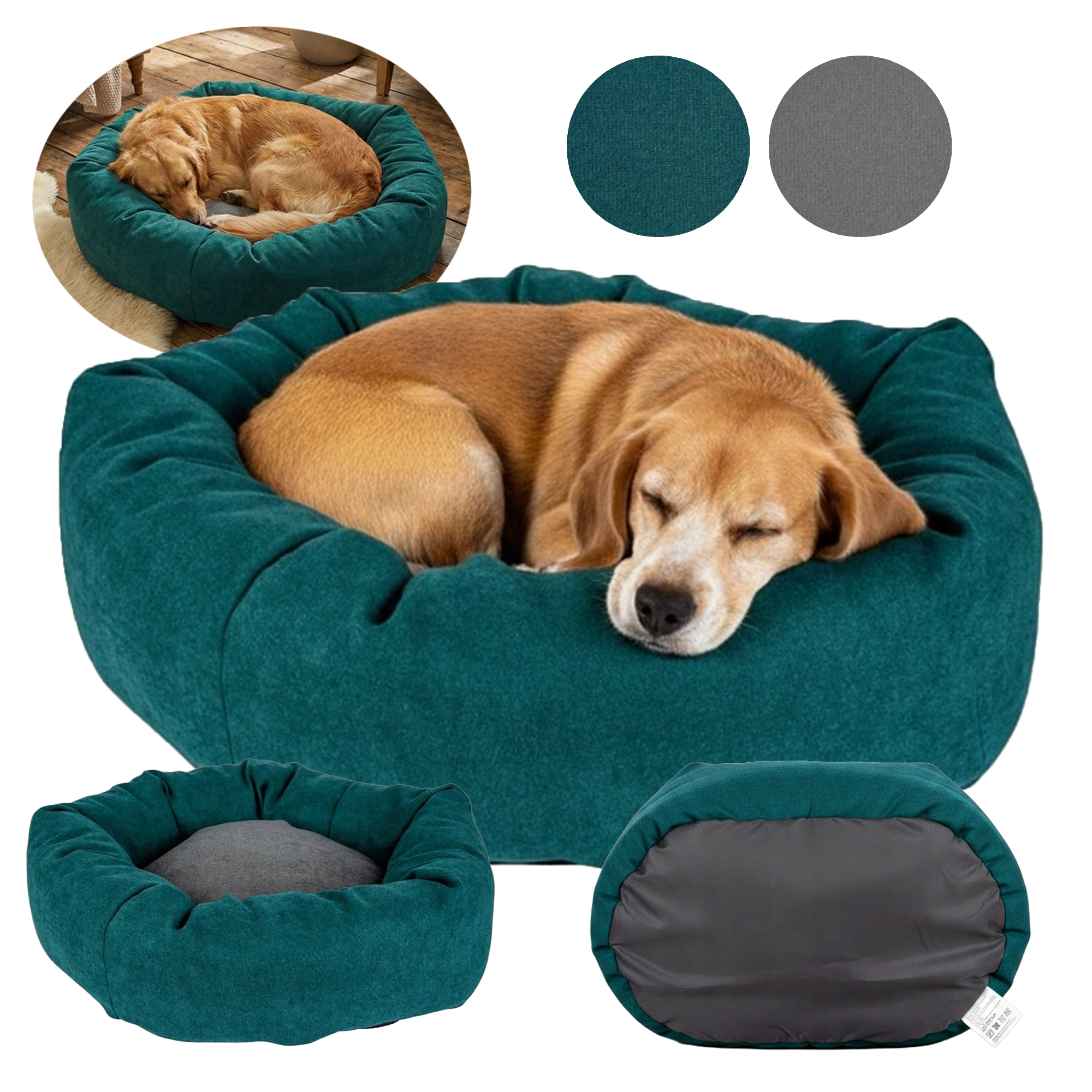 - Dno legowiska: 100% poliester z wypustkami PVC (antypoślizgowe)