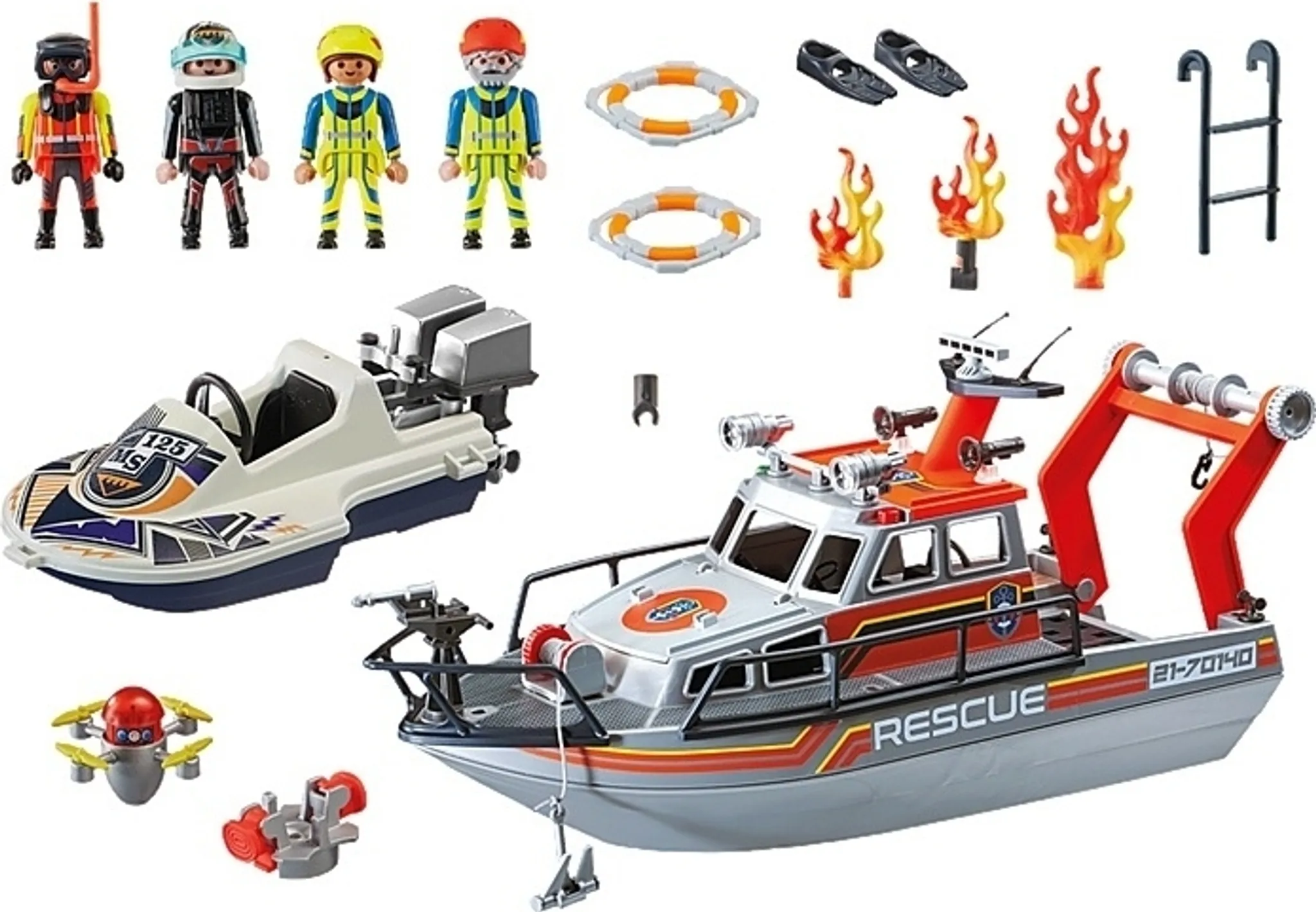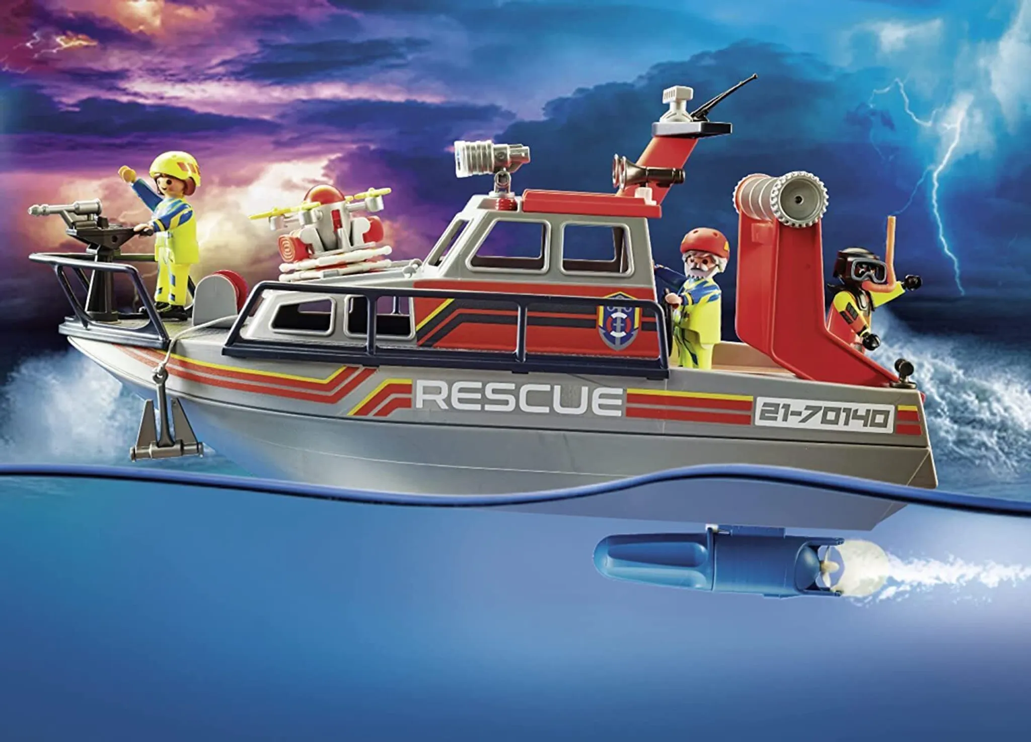 Zestaw PLAYMOBIL 70140 to idealna zabawka dla dzieci, które uwielbiają przygody i marzą o zostaniu ratownikami. W samym sercu akcji znajdziesz płonącą motorówkę i krążownik ratowniczy, gotowy do szybkiego reagowania. Dzięki bogatemu wyposażeniu oraz realistycznym funkcjom dzieci mogą przeżyć emocjonującą misję ratunkową!