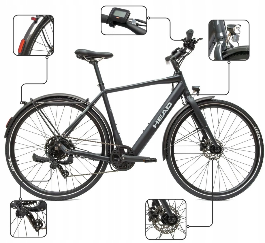 Rower elektryczny HEAD eUrban Neo to nowoczesny model trekkingowy stworzony z myślą o codziennej jeździe po mieście oraz dłuższych trasach poza nim. Łączy wygodną, wyprostowaną pozycję jazdy z wydajnym napędem elektrycznym, który znacząco odciąża użytkownika i pozwala pokonywać większe dystanse bez zmęczenia. Solidna aluminiowa rama o rozmiarze 46 cm zapewnia odpowiednią sztywność i komfort, a koła 28 cali gwarantują stabilność oraz dobre toczenie na różnych nawierzchniach.