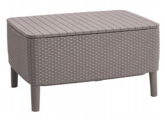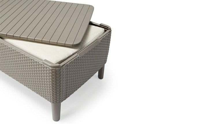 Stolik wyposażony jest w funkcję schowka, dzięki której bez problemu przechowasz poduszki siedziskowe lub inne drobiazgi. To wygodne rozwiązanie szczególnie przy zmiennej pogodzie – wszystko masz pod ręką i zawsze uporządkowane.