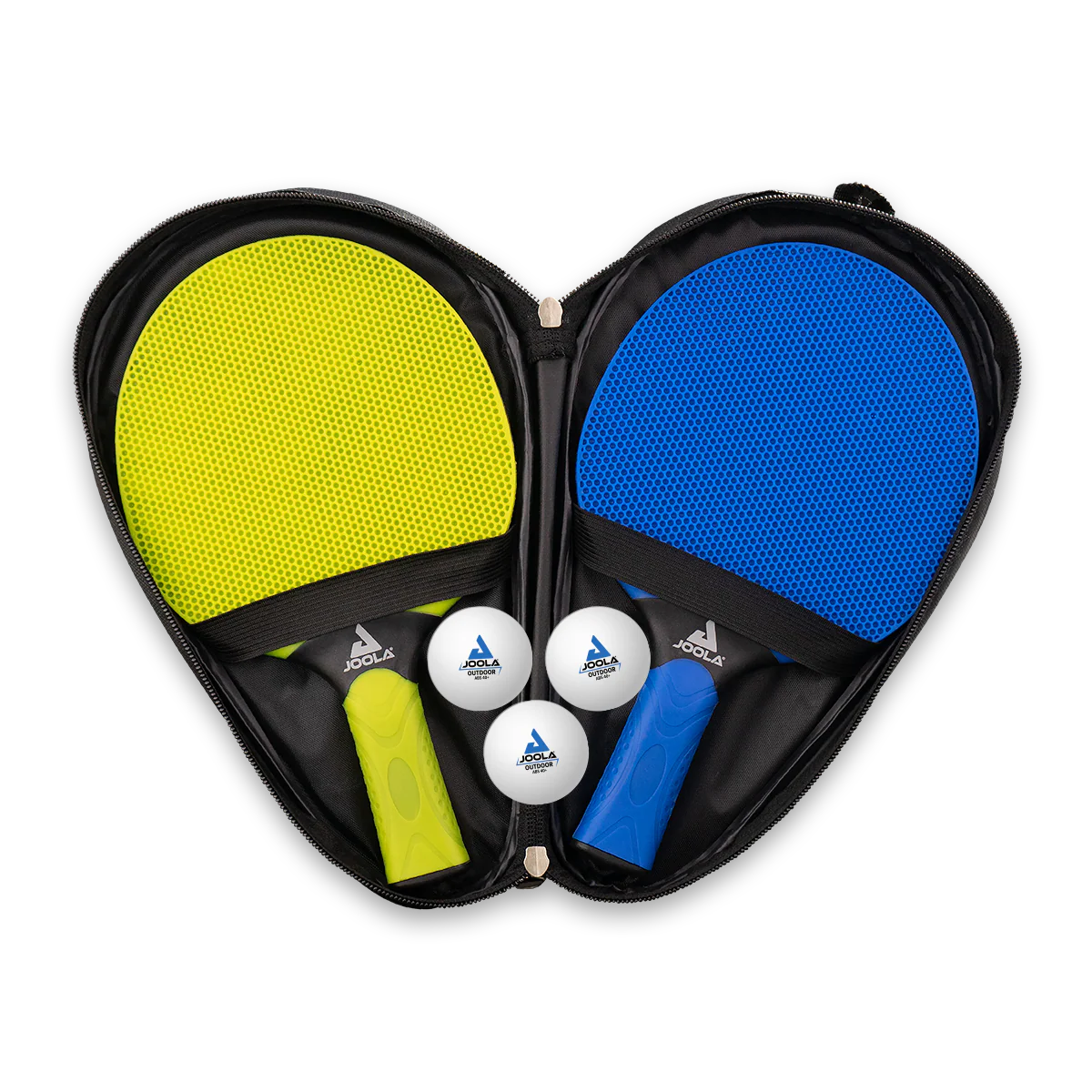Zestaw do tenisa stołowego JOOLA Vivid Outdoor to komplet stworzony specjalnie do gry na świeżym powietrzu. Dwie odporne na warunki atmosferyczne paletki, cięższe piłeczki outdoorowe ABS 40+ oraz praktyczny pokrowiec sprawiają, że możesz cieszyć się stabilną, kontrolowaną grą nawet przy wietrznej pogodzie – w ogrodzie, na tarasie czy na boisku plenerowym.